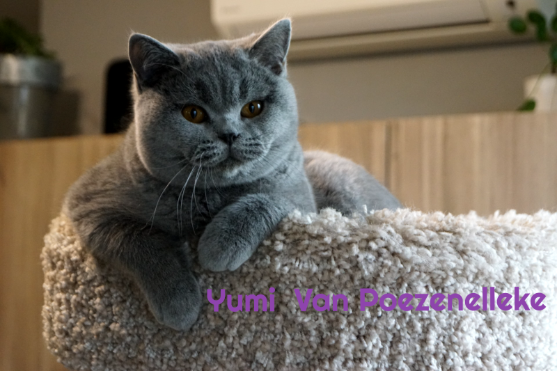 Yumi is een blauwe poes. Zij is de dochter van Kaiser van M&M en Blue Whiskers Feline, geboren op 6 april 2019. Zij is dus de volle zus van Mike van Poezenelleke.